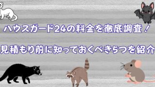 害獣駆除業者評判 ハウスガード24の料金を徹底調査!見積もり前に知っておくべき5つを紹介 ハウスガード24の料金は「8,000円〜」ですが、本格駆除では10万〜30万円前後になるケースも。見積もり前に知っておくべき5つのポイント(永年保証の条件・対応エリア・無料調査の使い方など)をわかりやすく解説します。 2026.04.23 害獣駆除業者評判